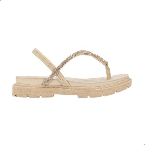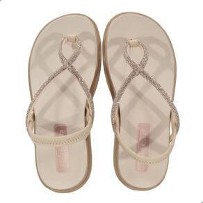 Sandália infantil menina da marca Pink Cats com estilo papete e cabedal composto por tiras finas e cobertas em pedrarias. Modelo com elástico na tira traseira elástica para adaptar-se ao pé e facilitar o calce.