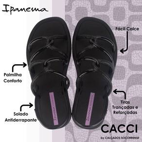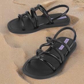 As tiras finas e entrelaçadas ganham texturas de alta definição que trazem o brilho, detalhamento que garante apelo comercial junto às consumidoras vaidosas. A sola, com contornos arredondados e bico levemente quadrado, traz novidade e muito conforto. O calce fácil garante praticidade no dia a dia.