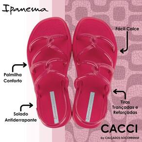 As tiras finas e entrelaçadas ganham texturas de alta definição que trazem o brilho, detalhamento que garante apelo comercial junto às consumidoras vaidosas. A sola, com contornos arredondados e bico levemente quadrado, traz novidade e muito conforto. O calce fácil garante praticidade no dia a dia.