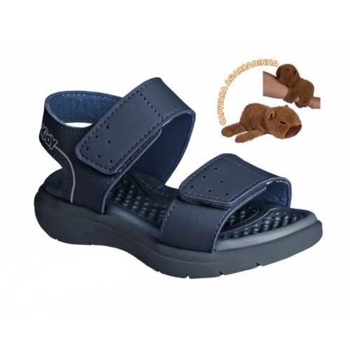 A Sandália Kidy Fly Baby Marinho é perfeita para os primeiros passos das crianças, unindo conforto, segurança e muita fofura. Este modelo acompanha um presente especial que vai encantar os pequenos: a divertida capivara agarradinha, um brinquedo macio que abraça o bracinho e torna a experiência ainda mais inesquecível. Com fechamento em fita adesiva, a sandália oferece calce fácil e ajuste seguro, ideal para o dia a dia. O solado em TR proporciona leveza, flexibilidade e efeito antiderrapante, garantindo estabilidade e segurança nas primeiras descobertas. A tecnologia Respitec mantém os pés arejados e secos, mesmo com uso prolongado, enquanto a exclusiva tecnologia Equilíbrio apoia o desenvolvimento natural da pisada, promovendo firmeza e estabilidade. Um calçado pensado para cuidar com carinho dos primeiros passos e transformar cada momento em diversão. Kidy: mais do que calçados, um abraço em cada passo.