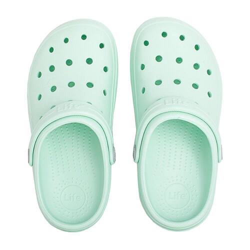 A Sandália Cloggis Infantil, da Life, foi projetada para oferecer maior conforto e durabilidade para o seu dia a dia. Confeccionado totalmente em EVA Litepro com composto ultra soft de altíssima qualidade, faz com que o Babuche não absorva água. Oferece também um solado com ranhuras que irão oferecer maior aderência e segurança na hora de andar. Além disso, ele possui a tecnologia antibacteriana, é resistente a mal odor e muito fácil de limpar. É o calçado ideal para complementar o look da criançada!