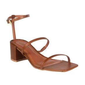 A sandália confeccionada em material confort é um modelo que combina estilo e praticidade. Com bico quadrado e salto médio bloco, design inclui tiras finas e uma tira adicional que contorna o tornozelo, com fechamento em fivela proporcionando ajuste elegante.