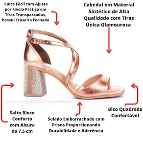 O salto bloco confere estabilidade e elegância, permitindo que você se destaque com confiança em qualquer ocasião. O conforto é a essência desta sandália, graças à sua palmilha macia e acolchoada, que garante uma experiência agradável durante todo o dia, seja no trabalho, em eventos sociais ou em um passeio descontraído.
