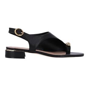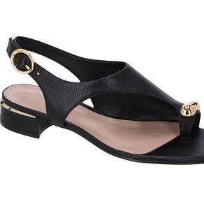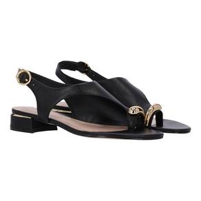 Sandália Luz da Lua Aplique Salto Baixo - 38 - Preto