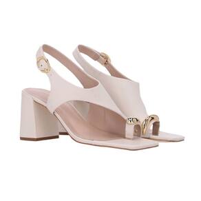 O modelo traz uma proposta minimalista e elegante, com foco no conforto e na estética refinada. A combinação do salto bloco com o aplique dourado oferece charme e versatilidade para diferentes ocasiões.