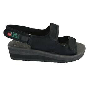 Detalhe Técnico: Sandália Mila – Modelo com ajustes em fita autocolante e base reflexológica. A Sandália Mila foi projetada para oferecer conforto anatômico, praticidade de ajuste e estímulos integrados. Confeccionada em tecido sintético preto de alta resistência, é leve, fácil de higienizar e possui excelente durabilidade. Seu design funcional conta com várias tiras com fechamento em fita autocolante, que permitem ajuste personalizado ao formato do pé, ideal para pessoas com inchaço, pés sensíveis, pés largos ou com mobilidade reduzida. O sistema de fita autocolantes facilita o calce, proporcionando maior autonomia ao usuário. A palmilha anatômica é equipada com saliências estrategicamente posicionadas, que atuam sobre os pontos da reflexologia podal e da técnica Doin, oferecendo massagem plantar contínua, ativação da circulação sanguínea e alívio de tensões musculares. Incorporados à base da sandália, 14 magnetos permanentes atuam por meio da magnetoterapia passiva, contribuindo para o equilíbrio energético do corpo, melhora na oxigenação dos tecidos, redução de dores e relaxamento físico. O solado em EVA expandido garante absorção de impacto, leveza e aderência, proporcionando segurança no uso prolongado. Especificações Técnicas: Material do cabedal: Tecido sintético preto Ajustes: 3 pontos de fita autocolante (antepé, peito do pé e calcanhar) Palmilha: Anatômica com saliências de reflexologia e Doin Magnetos: 14 unidades fixadas nos principais pontos reflexos Solado: EVA expandido – leve, flexível e com boa tração Indicação: Alívio de dores plantares, má circulação, sensação de peso nas pernas e uso prolongado com conforto Numeração disponível: 33 ao 41