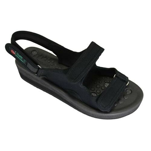 Detalhe Técnico: Sandália Mila – Modelo com ajustes em fita autocolante e base reflexológica. A Sandália Mila foi projetada para oferecer conforto anatômico, praticidade de ajuste e estímulos integrados. Confeccionada em tecido sintético preto de alta resistência, é leve, fácil de higienizar e possui excelente durabilidade. Seu design funcional conta com várias tiras com fechamento em fita autocolante, que permitem ajuste personalizado ao formato do pé, ideal para pessoas com inchaço, pés sensíveis, pés largos ou com mobilidade reduzida. O sistema de fita autocolantes facilita o calce, proporcionando maior autonomia ao usuário. A palmilha anatômica é equipada com saliências estrategicamente posicionadas, que atuam sobre os pontos da reflexologia podal e da técnica Doin, oferecendo massagem plantar contínua, ativação da circulação sanguínea e alívio de tensões musculares. Incorporados à base da sandália, 14 magnetos permanentes atuam por meio da magnetoterapia passiva, contribuindo para o equilíbrio energético do corpo, melhora na oxigenação dos tecidos, redução de dores e relaxamento físico. O solado em EVA expandido garante absorção de impacto, leveza e aderência, proporcionando segurança no uso prolongado. Especificações Técnicas: Material do cabedal: Tecido sintético preto Ajustes: 3 pontos de fita autocolante (antepé, peito do pé e calcanhar) Palmilha: Anatômica com saliências de reflexologia e Doin Magnetos: 14 unidades fixadas nos principais pontos reflexos Solado: EVA expandido – leve, flexível e com boa tração Indicação: Alívio de dores plantares, má circulação, sensação de peso nas pernas e uso prolongado com conforto Numeração disponível: 33 ao 41