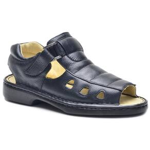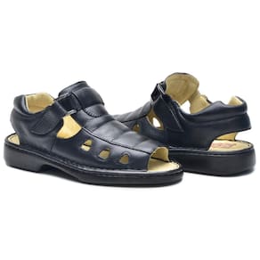Sandália Masculina Couro Adulto Confortável Macia Recortes - 38 - Preto