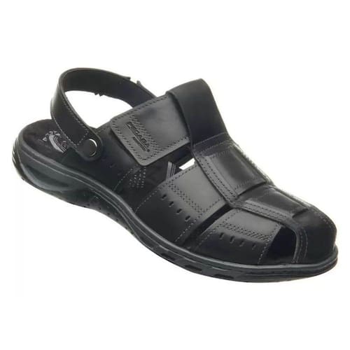 Sandália masculina fabricada em couro, fechada na frente, possui sistema Amortech Pegada. Pode ser usada também como chinelo.