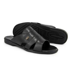 Sandália Masculina Couro Confortável Calce Fácil Clássica - 41 - Preto
