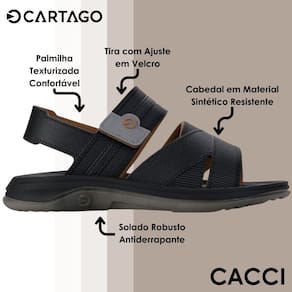 A Sandália Cartago Santorini VII conta com uma sola robusta e duradoura, cabedal com regulagem aderente que garante mais facilidade e segurança ao calce, mix de texturas em desenho de “X” e detalhes que dão mais estilo ao modelo. A textura da palmilha deixa o toque mais macio e confortável para o uso no dia a dia.