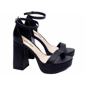 Salto: Grosso com 11,5 cm de Altura Revestido em Revestida em Croco Preto.