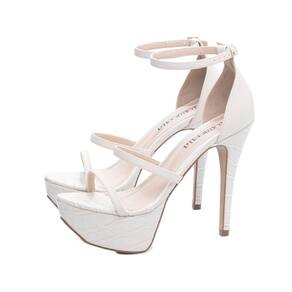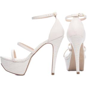 Material: Napa Off White e Croco Off White Enfeites: Fivela de Ajuste na cor Dourado Palmilha: 8 mm de Espessura, Espuma em EVA, Revestida em Napa Croco Off White e Taloneira Napa Bege Meia Pata: Revestida em Napa Croco Off White com 3,5 cm de altura Salto: Fino com 13 cm de Altura Revestido em Napa Croco Off White Solado de Micro na cor Bege.