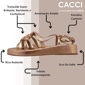 Sandalia Metalizada Conforto Tendencia Flat Cacci 4786-07: O Brilho da Moda com o Conforto que Você Merece
