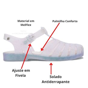 A Mini Melissa Possession Glitter 35759 possui uma construção em material plástico de alta qualidade, que é resistente e durável, garantindo que os pequenos possam brincar e explorar com conforto e segurança. Além disso, seu fechamento em fivela proporciona um ajuste seguro e personalizado.