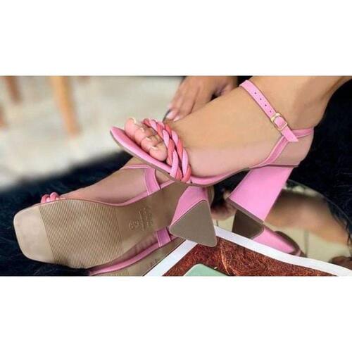 Sandalia Minimal Rosa Trançada Salto Triangular Geometrico Salto 8cm