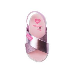 Nome: Sandália Molekinha Baby MK21-27131. Gênero: Feminino. Indicado para: Moda - Dia a Dia. Estilo da Peça: Casual. Material Externo: Sintético laminado com tira em Glitter. Etiqueta emborrachada. Fechamento: Elástico atrás. Palmilha: Anatômica e macia. Solado: EVA antiderrapante. Peso do Produto: 283 g (o peso varia de acordo com a numeração). Garantia do Fabricante: Contra defeito de fabricação. Origem: Nacional. Código Produto: 04050451.