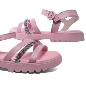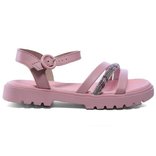 Com três tiras em napa e detalhes em strass, este modelo apresenta um design moderno e encantador que vai deixar as pequenas fashionistas ainda mais estilosas. O fechamento por fivela adiciona um toque de praticidade ao calçado.