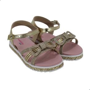 Sandália Molekinha Metalizado Premium Glitter Mini Dourado/Rosa - 17 - Amarelo Ouro