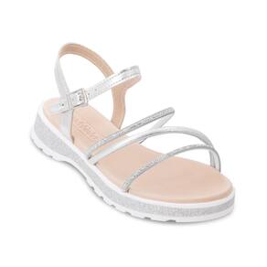 Encante-se com a elegância e o conforto da Sandália Molekinha Infantil! Confeccionada em material alternativo metalizado, ela oferece um brilho único que vai conquistar o olhar de todos. As tiras finas, delicadamente adornadas com aplicações de strass no cabedal, trazem um toque de glamour para os pés das pequenas. A palmilha em EVA macia garante conforto o dia todo, enquanto o fechamento com tira e fivela assegura um ajuste perfeito. A entressola com detalhe em glitter e o solado antiderrapante em EVA proporcionam estilo e segurança a cada passo. Uma escolha perfeita para momentos de diversão e elegância!