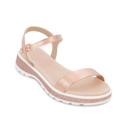 Encante-se com a elegância e o conforto da Sandália Molekinha Infantil! Confeccionada em material alternativo metalizado, ela oferece um brilho único que vai conquistar o olhar de todos. As tira metalizada no cabedal traz um toque de glamour para os pés das pequenas. A palmilha em EVA macia garante conforto o dia todo, enquanto o fechamento com tira e fivela assegura um ajuste perfeito. A entressola com detalhe em glitter e o solado antiderrapante em EVA proporcionam estilo e segurança a cada passo. Uma escolha perfeita para momentos de diversão e elegância!