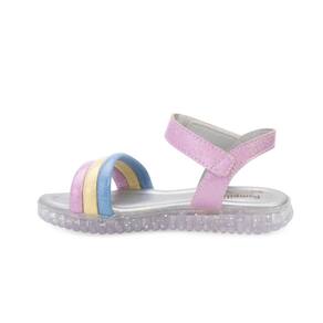 A Sandália Molekinha Infantil é versátil e combina com vários looks, desde os mais divertidos até os mais elegantes. Confeccionado em material alternativo de alta qualidade, possui tiras coloridas com brilhos no cabedal, trazendo muito charme e delicadeza a sandália. Fechamento por tira aderente e palmilha anatômica para maior conforto. O solado de borracha transparente possui frisos antiderrapantes para maior segurança ao caminhar.