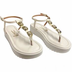 Sandália Papaete Feminina Flatform Vizzano Com Pedrarias - 36 - Branco