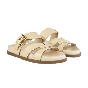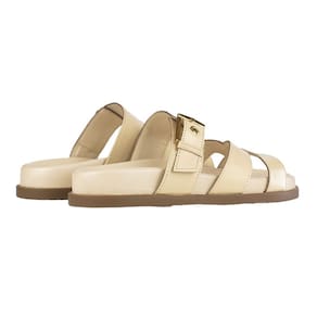A sandália rasteira é prática e despojada. Vem ainda com fivela imponente e em tom neutro, garantindo um toque único nas composições. Para usar do office ao passeio no final de semana, aposte!
