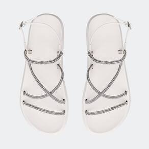 Sandália Papete Bahamas Glam Brilho Strass - 36 - Branco