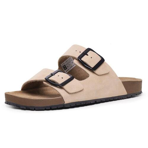 Sandalia Papete Couro Fivela de Metal Com Regulagem Moderna Calce Facil Confortavel - 36 - Bege