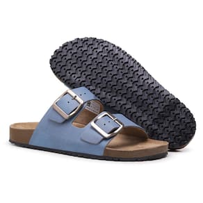 Sandalia Papete Couro Fivela de Metal Com Regulagem Moderna Calce Facil Confortavel - 41 - Azul Petróleo