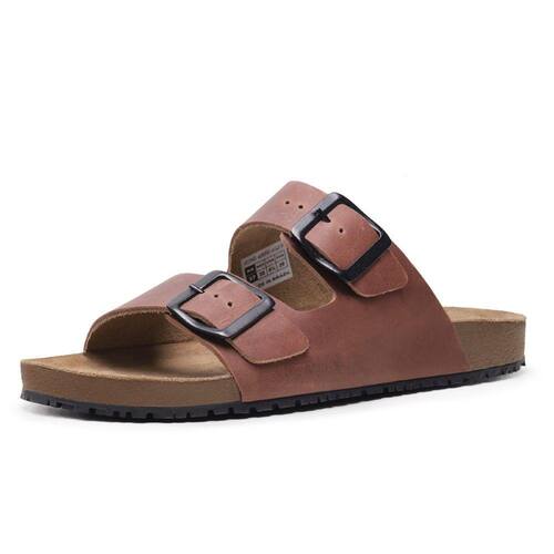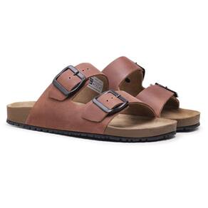 Sandalia Papete de Couro Unissex Fivela Regulavel Basica Palmilha Anatomica Conforto - 40 - Marrom