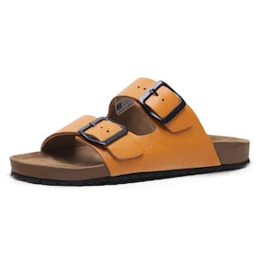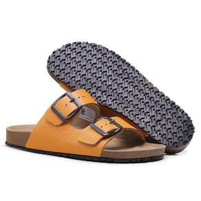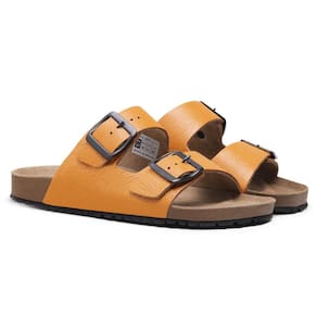 Sandalia Papete de Couro Unissex Fivela Regulavel Basica Palmilha Anatomica Conforto - 41 - Mostarda