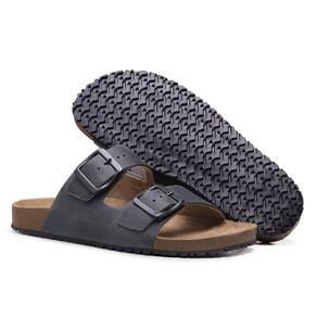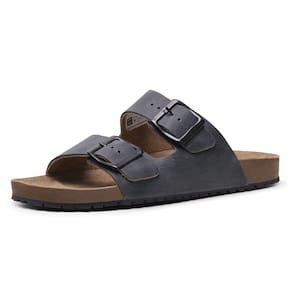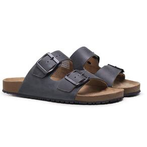 Sandalia Papete de Couro Unissex Fivela Regulavel Basica Palmilha Anatomica Conforto - 35 - Cinza