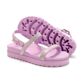 Sandalia Papete de Strass Flatform Feminina Rasteirinha Tratorada Com Fivela Moderna Palmilha Macia - 38 - Lilás