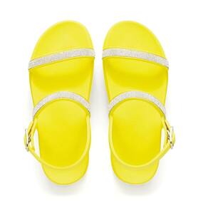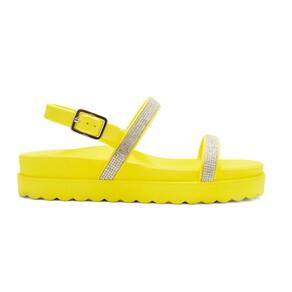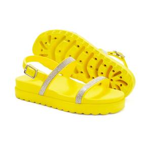 Sandalia Papete de Strass Flatform Feminina Rasteirinha Tratorada Com Fivela Moderna Palmilha Macia - 37 - Amarelo