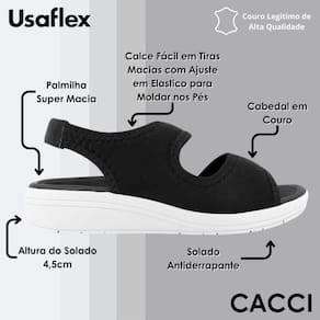Durabilidade e Estilo: Fabricada com materiais de alta qualidade, esta sandália papete é resistente e construída para resistir ao uso diário. Seu acabamento cuidadoso e detalhes bem trabalhados refletem a excelência artesanal da Usaflex, garantindo estilo e durabilidade.