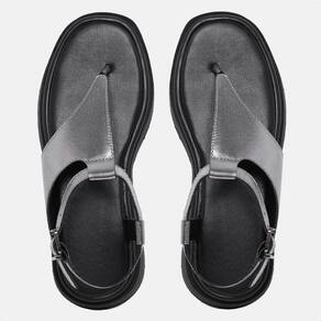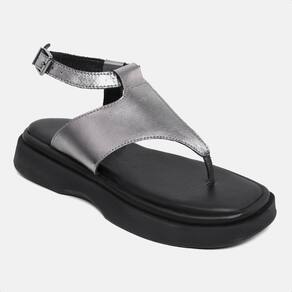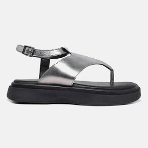 A papete combina sofisticação e funcionalidade com couro de brilho metálico e design minimalista. Possui uma tira assimétrica no peito do pé, uma fina entre os dedos e uma fivela ajustável no tornozelo, unindo conforto e estilo. A sola de 3cm plataforma ergonômica de borracha é leve, durável e estável, ideal para longas caminhadas. O contraste entre o e o preto fosco da sola confere modernidade, tornando-a versátil para looks casuais ou elegantes. Uma escolha prática e estilosa para conforto diário ou ocasiões descontraídas.