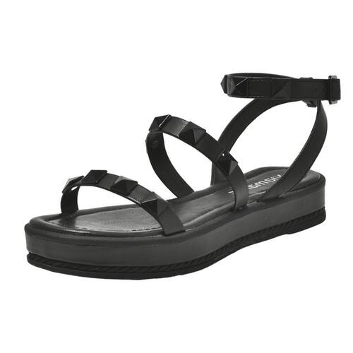 A Sandália Papete Via Marte é uma opção deslumbrante para quem busca um calçado estiloso e confortável. Com seu solado flatform e bico quadrado, ela oferece uma pisada firme e segura. Seu calcanhar aberto é adornado por tiras médias, que se cruzam e envolvem o tornozelo, proporcionando um ajuste perfeito através do fechamento prático na lateral. Além disso, tiras médias com enfeites em pedrarias em forma de pirâmide envolvem os dedos e o peito do pé, adicionando estilo e conforto ao modelo.