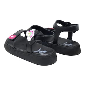 O ajuste prático da tira autocolante no calcanhar permite colocar e tirar a sandália com facilidade. Além disso, o detalhe em arco-íris traz um toque lúdico e fofo, deixando a sandália ainda mais encantadora.