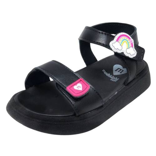 O ajuste prático da tira autocolante no calcanhar permite colocar e tirar a sandália com facilidade. Além disso, o detalhe em arco-íris traz um toque lúdico e fofo, deixando a sandália ainda mais encantadora.
