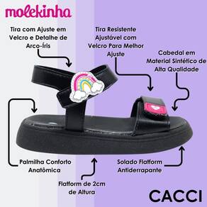 Proporcione conforto e estilo para sua pequena com a Sandália Papete Conforto da Molekinha! Ela vai amar o toque de arco-íris, enquanto você se encanta com a praticidade e o bem-estar que esse calçado oferece. Garanta já a sua!