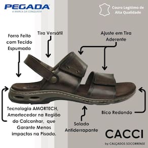 Ideal para você passar o dia com um estilo casual e cheio de conforto. Seu cabedal é confeccionado em couro e contém tiras auto colantes, além de uma tira traseira versátil que torna o modelo dois em um: uma sandália que vira chinelo., para um calce facilitado.