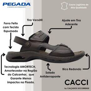 Ideal para você passar o dia com um estilo casual e cheio de conforto. Seu cabedal é confeccionado em couro e contém tiras auto colantes, além de uma tira traseira versátil que torna o modelo dois em um: uma sandália que vira chinelo., para um calce facilitado.