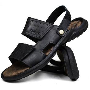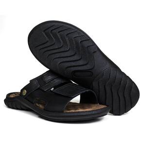 Sandália Papete Masculina de Couro Preto 3500 - 42 - Preto