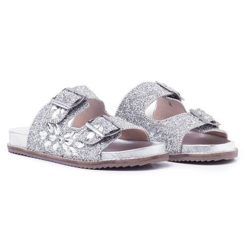 Sandália Papete Rasteira Pedrarias Fivela Ajustável Feminina Moda Fashion Passeio Sola Borracha - 37 - Prata