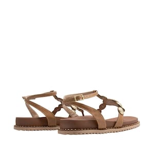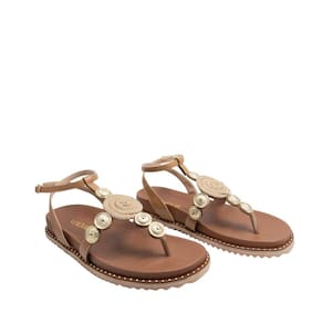 Esta sandália papete traz um design sofisticado e elegante, perfeita para os dias mais quentes. Com uma base de cor neutra e detalhes em metal dourado, ela oferece um visual moderno e refinado. O aplique central em corda confere um toque rústico e único, enquanto as tiras ajustáveis garantem conforto e segurança. A sola é robusta e resistente, proporcionando estabilidade ao caminhar. Ideal para compor looks casuais e descontraídos, essa sandália é uma escolha prática e estilosa para o verão.
