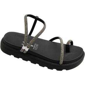 Sandália Papete Vizzano Plataforma Tiras Strass Black Diamond Feminina - 39 - Preto