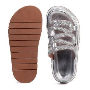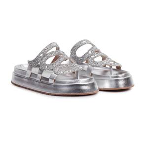 Sandália Plataforma Flat Feminina Pedrarias Chatons Moda Casual Passeio Dia a Dia Mulher Elegante - 36 - Prata