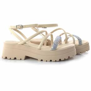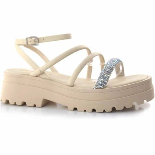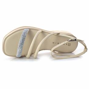 Sandália Ramarim Feminina Salto Flatform Baixo Strass Nude 338619